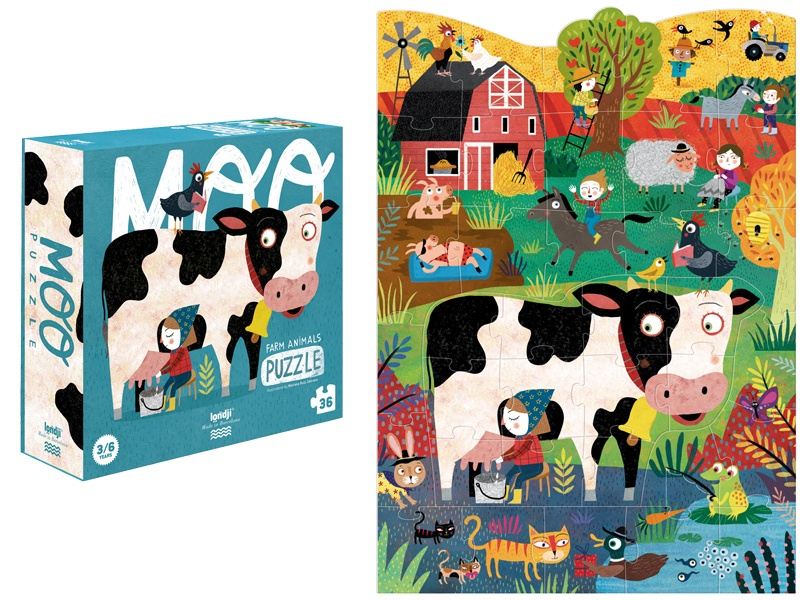 Descoperă cu ajutorul acestor puzzle-uri care se completează reciproc, cea mai veselă fermă cu animale jucăușe. Poți completa întâi văcuța (puzzle din 11 piese) și în jurul ei se vor aduna apoi restul animalelor prietenoase, formând un puzzle complet de 36 de piese.