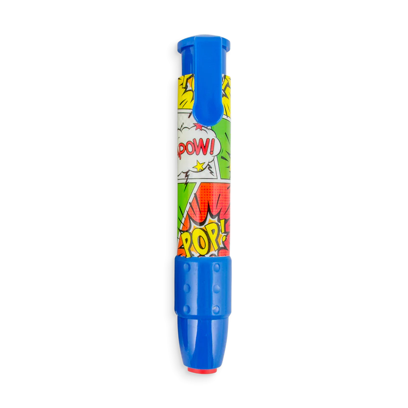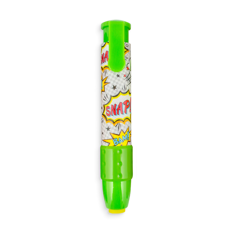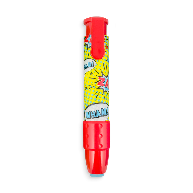 Eliminați greșelile de creion ca un adevărat erou de acțiune. Ștergeți cu stil ca un adevărat super erou. Disponibil în verde, roșu, negru și albastru.