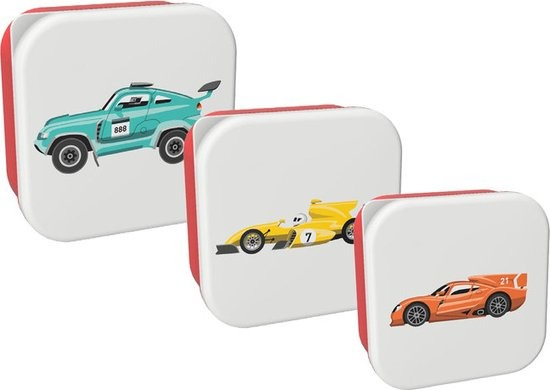 Set 3 cutii pentru alimente, design masini de curse