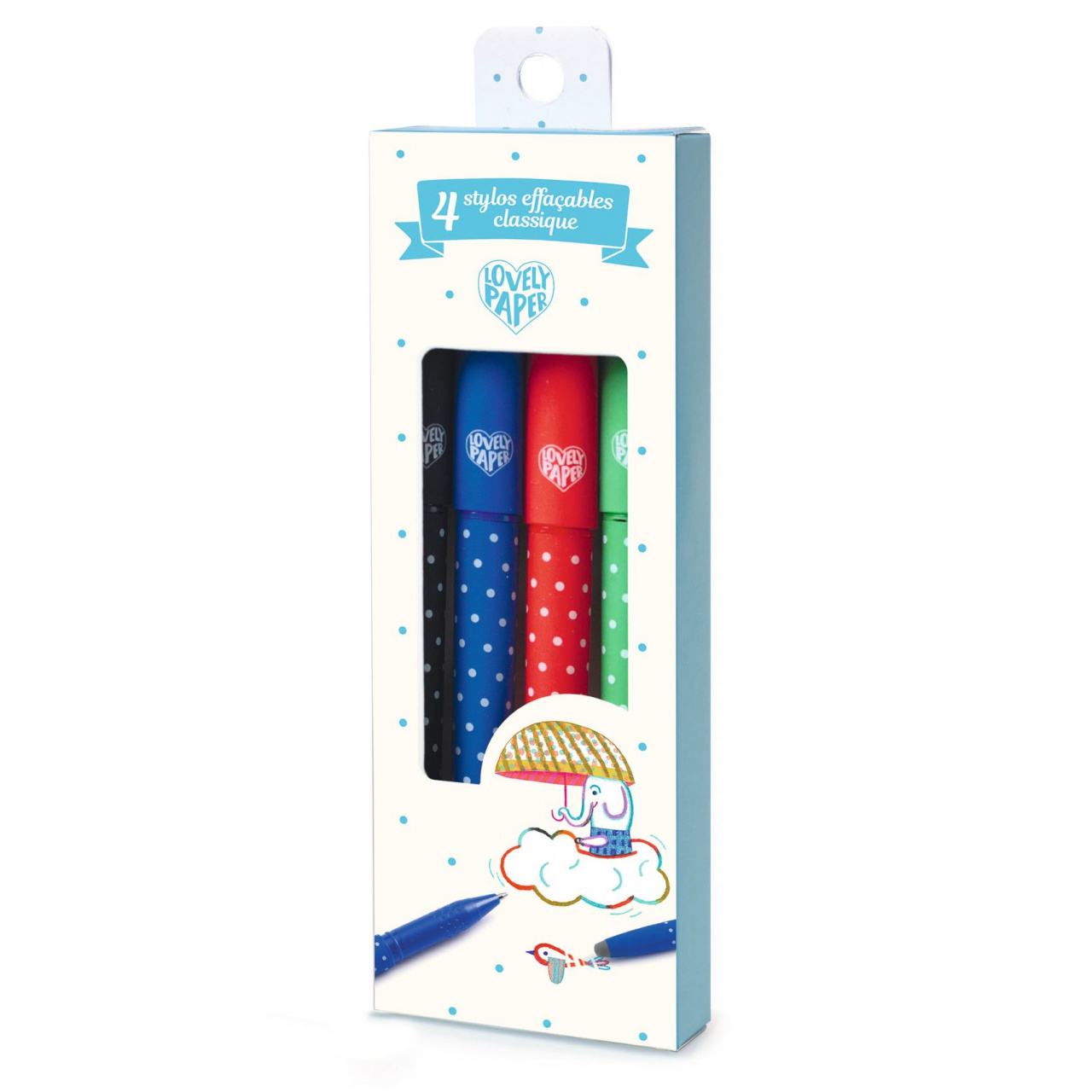Set 4 pixuri cu radiera 4 pixuri în culori clasice, cu capace cu clips și radieră pentru a șterge cerneala. Perfecte pentru a scrie, șterge și a o lua de la capăt. Culoarea pixului se potrivește cu cea a cernelii pentru o identificare ușoară. Capac cu clemă de agățat. Ambalate în cutie din carton frumos decorată, cu fereastră