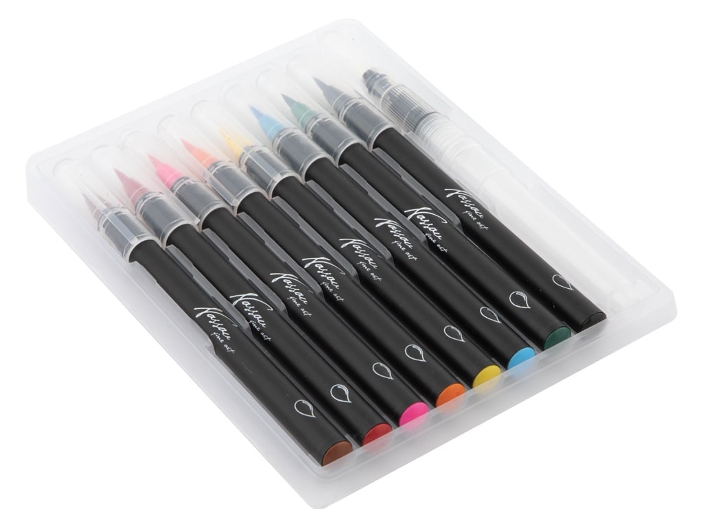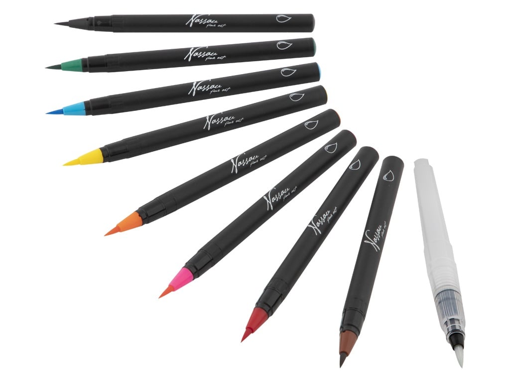 Setul de carioci cu varf tip pensula Nassau Fine Art este perfect pentru artistii care cauta versatilitate si precizie in lucrarile lor. Acest set contine 8 carioci pe baza de apa, fiecare echipat cu un varf tip pensula, ideal pentru tehnici de colorare detaliate si expresive.