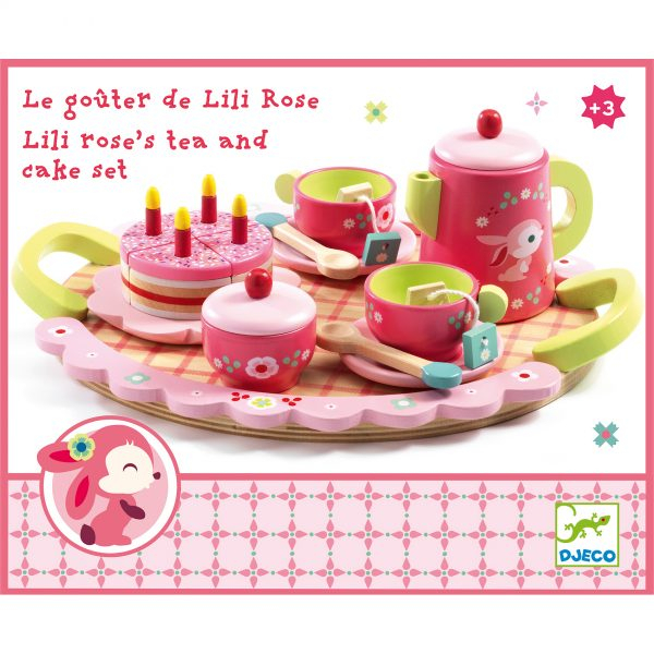 Setul conține: tort, ceșcuțe si farfurioare, ceainic și zaharniță, tăvița, toate din lemn.