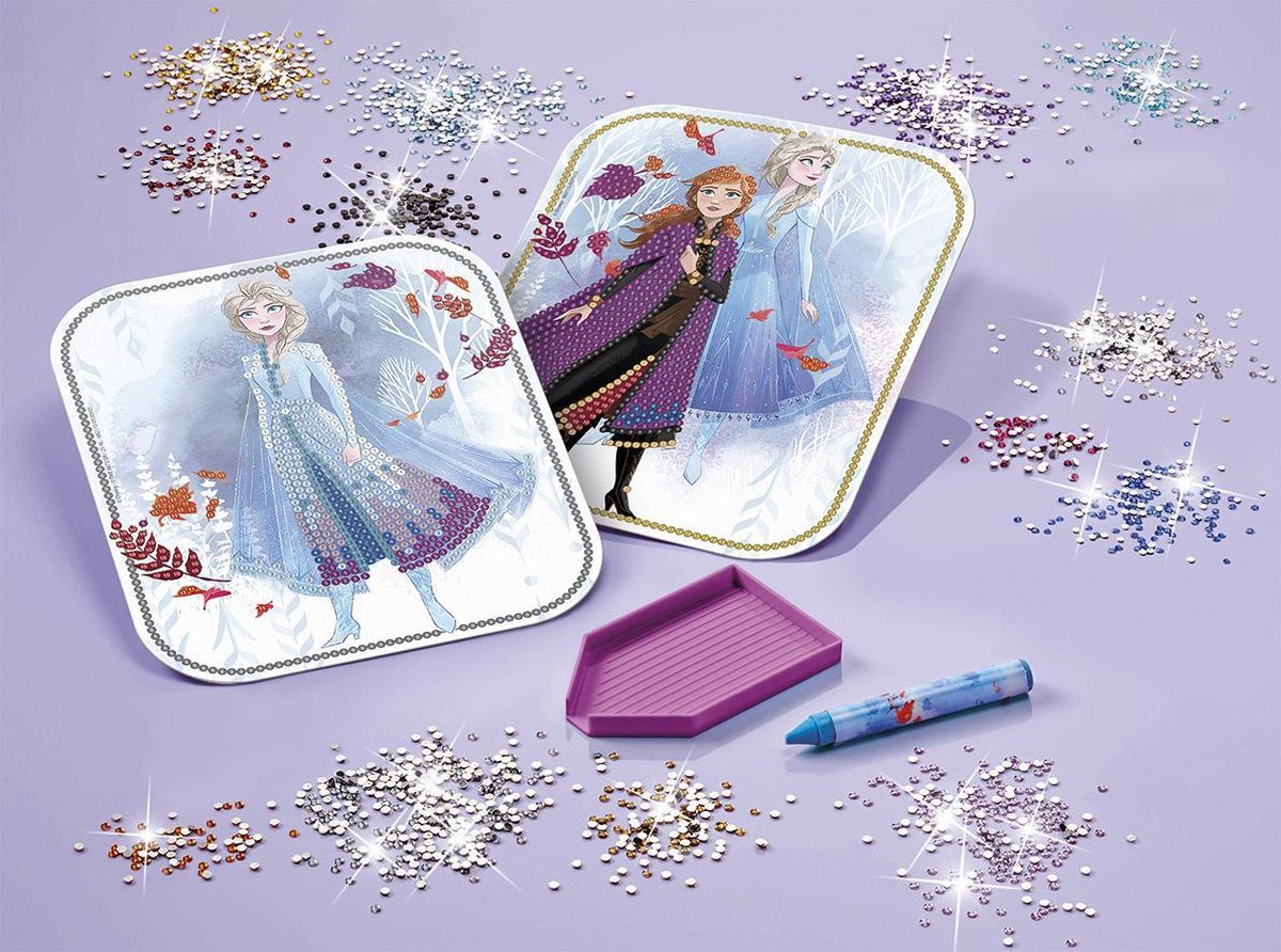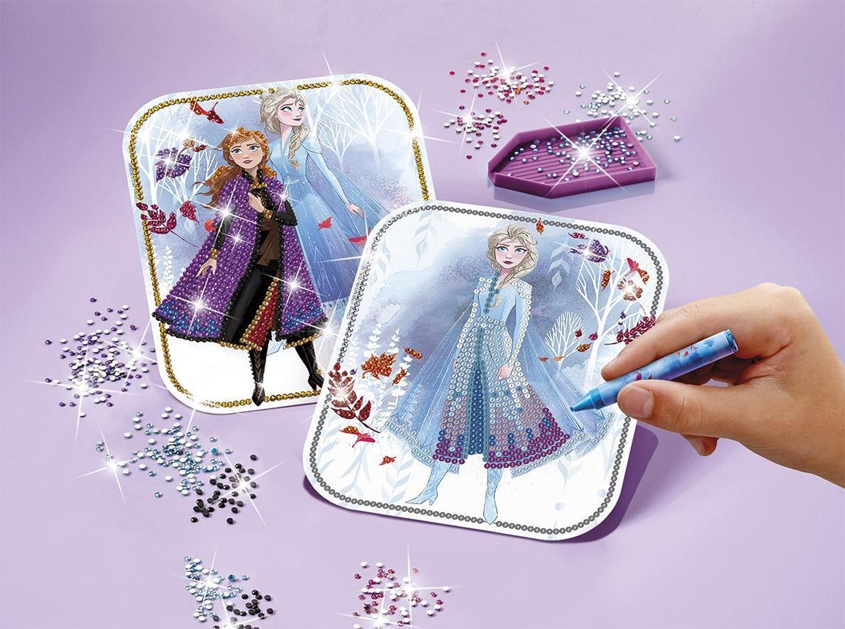 Cel mai nou set Disney Frozen, o combinatie perfecta de 2 activitati creative, intr-o cutie cadou super cool. Poti face 2 bratari cu pandantive cu printesele tale preferate Anna si Elsa si 2 tablouri cu pictura cu diamante.