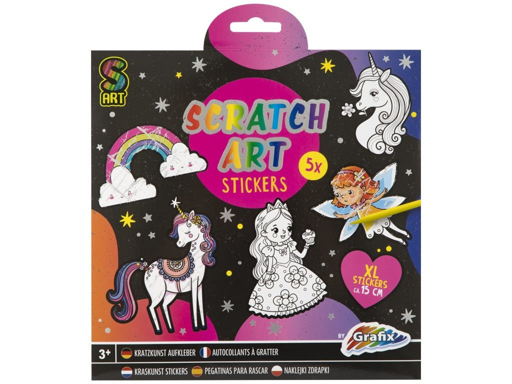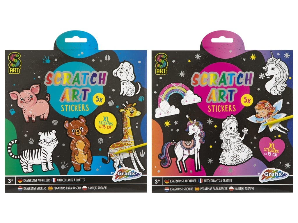 Imbogateste-ti creativitatea cu setul nostru "Grafix Scratch Art Stickers"! Acest set fascinant de abbtibilduri de razuit, cu modele variate si instrumentul pentru razuit este perfect pentru toti cei care iubesc sa creeze si sa se exprime artistic. Ideal pentru dezvoltarea abilitatilor creative si motorii, acest set ofera o activitate plina de distractie si invatare.