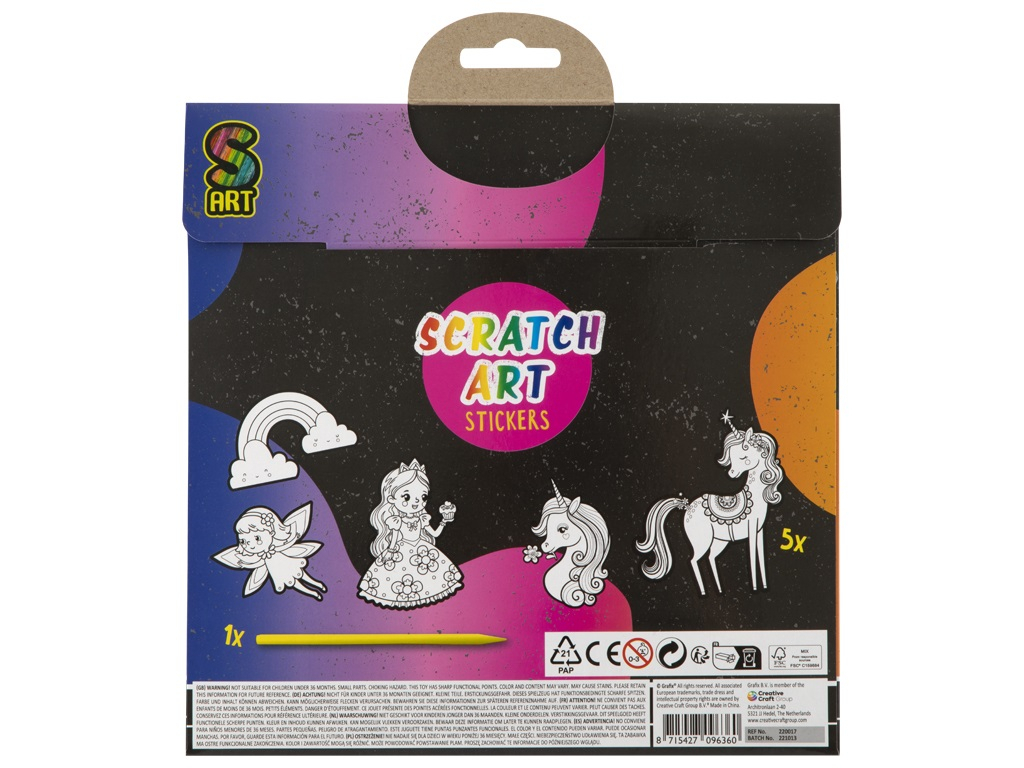 1 instrument pentru razuit: Stiloul special inclus este ideal pentru a razui suprafata stickerelelor si a dezvalui culorile ascunse sub stratul superior.