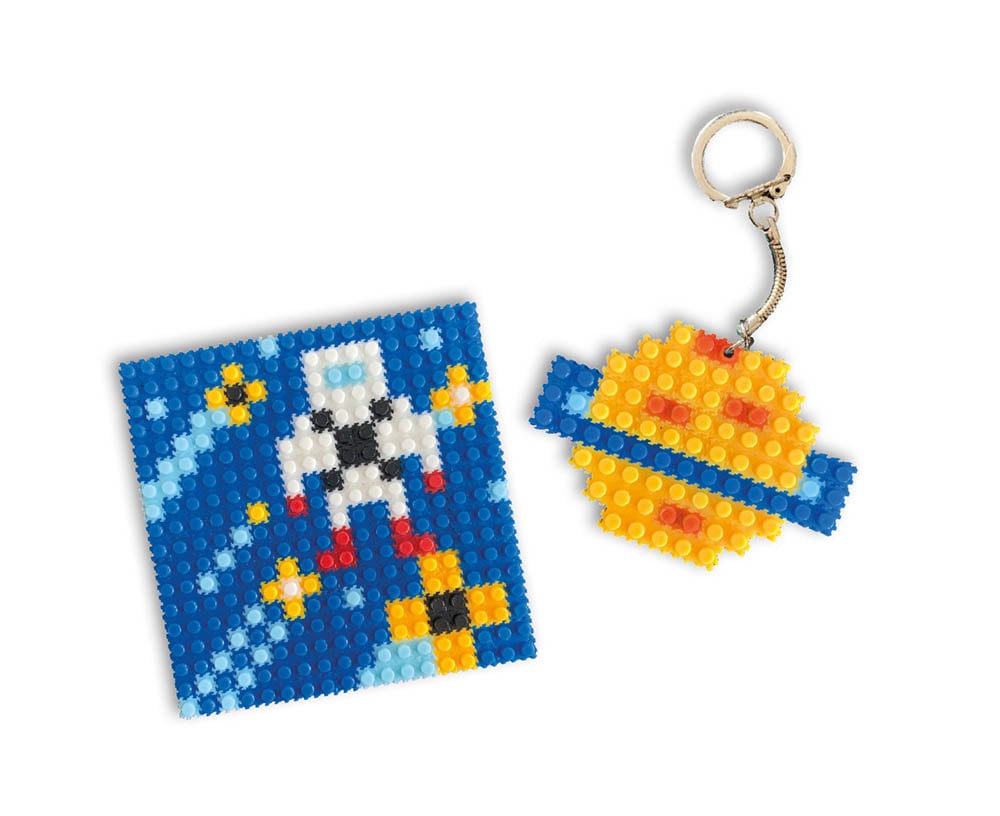 Copiii se vor distra creand un magnet pentru frigider, un tablou frumos, un breloc sau o amuleta norocoasa de agatat la ghiozdan. Setul include peste 500 de pixeli mari, 2 brelocuri, un magnet si un ghid explicativ.