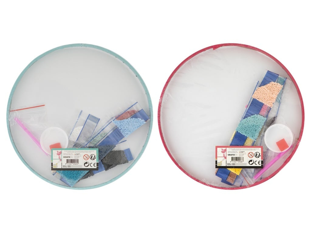 Conținutul setului: - Pânză preimprimată cu model mandala: Șablonul mandala, cu diametrul de 30 cm, vine predesenat și cu o suprafață lipicioasă, pregătită pentru aplicarea pietricelelor.