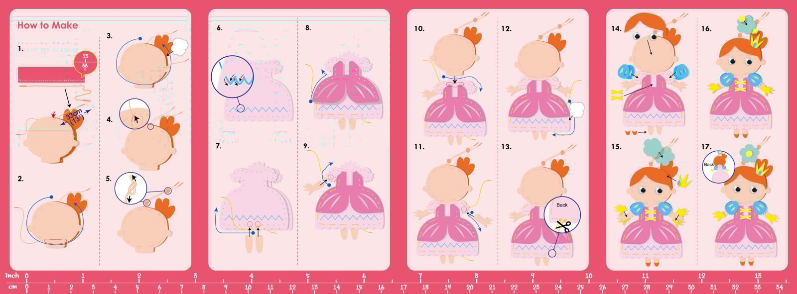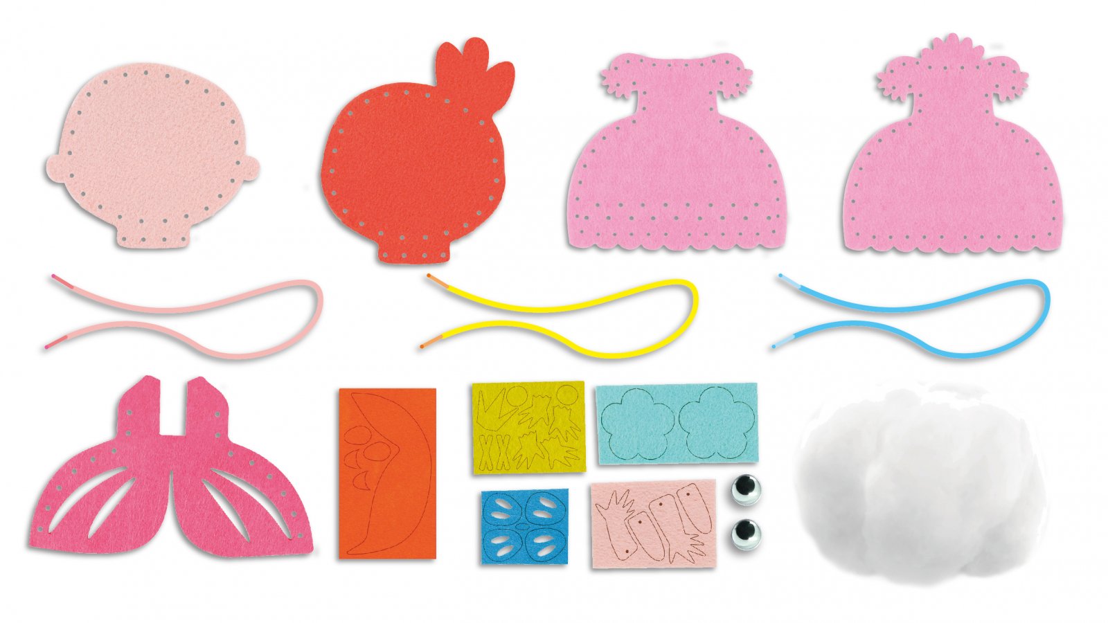 Acest kit conține 1 personaj adorabile cu tematică printese, împreună cu foi de pâslă pretăiate, autocolante decorative din pâslă, ochi de plastic, umplutură din bumbac și șireturi colorate.