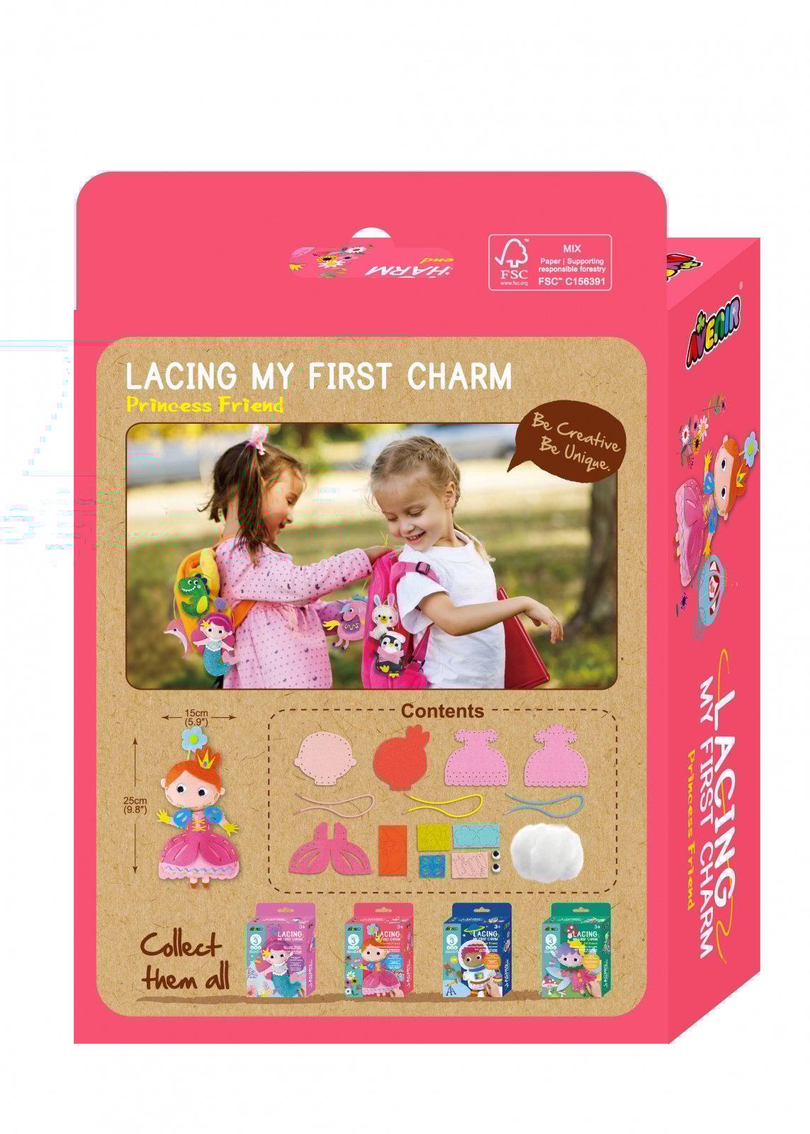 Conceput pentru mâini mai mici, cu fir gros de siret și găuri mari, Lacing My First Charm Princess Friends conține 1 personaj printesa distractiva și ușor de făcut, cu care să creați și să vă jucați.
