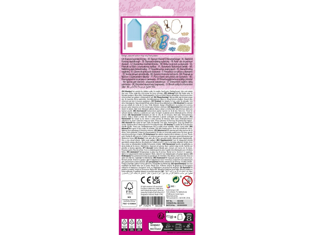 Set creativ DIY, Creeaza propriul breloc cu tehnica diamond painting, Barbie