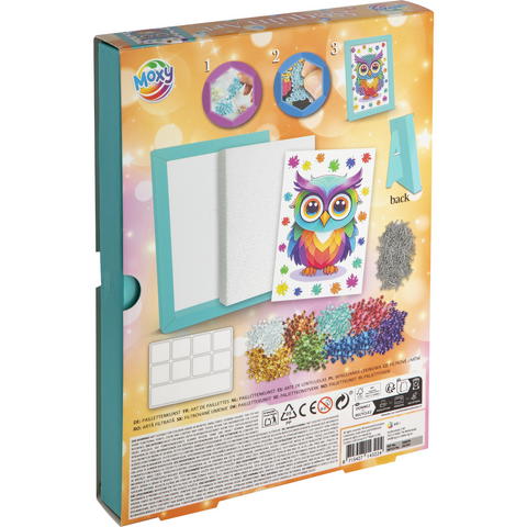 Acest set DIY creativ pentru copii este perfect pentru a le stimula imaginatia si abilitatile artistice! Setul include o rama din carton, carton imprimat cu desene atractive, o baza din polistiren, 8 pungi cu paiete colorate pentru a adauga un strop de stralucire, un set de ace mici pentru a fixa paietele si o tava din plastic pentru organizarea materialelor. Copiii se vor bucura sa creeze propriul lor tablou plin de culoare si stralucire, dezvoltandu-si abilitatile de motricitate fina intr-o activitate creativa si distractiva! Setul include: rama din carton, carton imprimat, baza din polistiren, 8 pungi cu paiete colorate, set de ace mici, tava din plastic Dimensiune imagine : 26 x 19 Varsta recomandata: 6 ani+ Atentie! Contraindicat copiilor mai mici de 3 ani. Jucaria/produsul poate contine piese mici care se pot inghiti sau inhala existand pericolul de sufocare sau nu este potrivita copiilor mai mici de 3 ani. Este recomandat să supravegheați copilul în timpul jocului sau utilizării acestui produs. Pastrati instructiunile si etichetele pentru referinte viitoare.