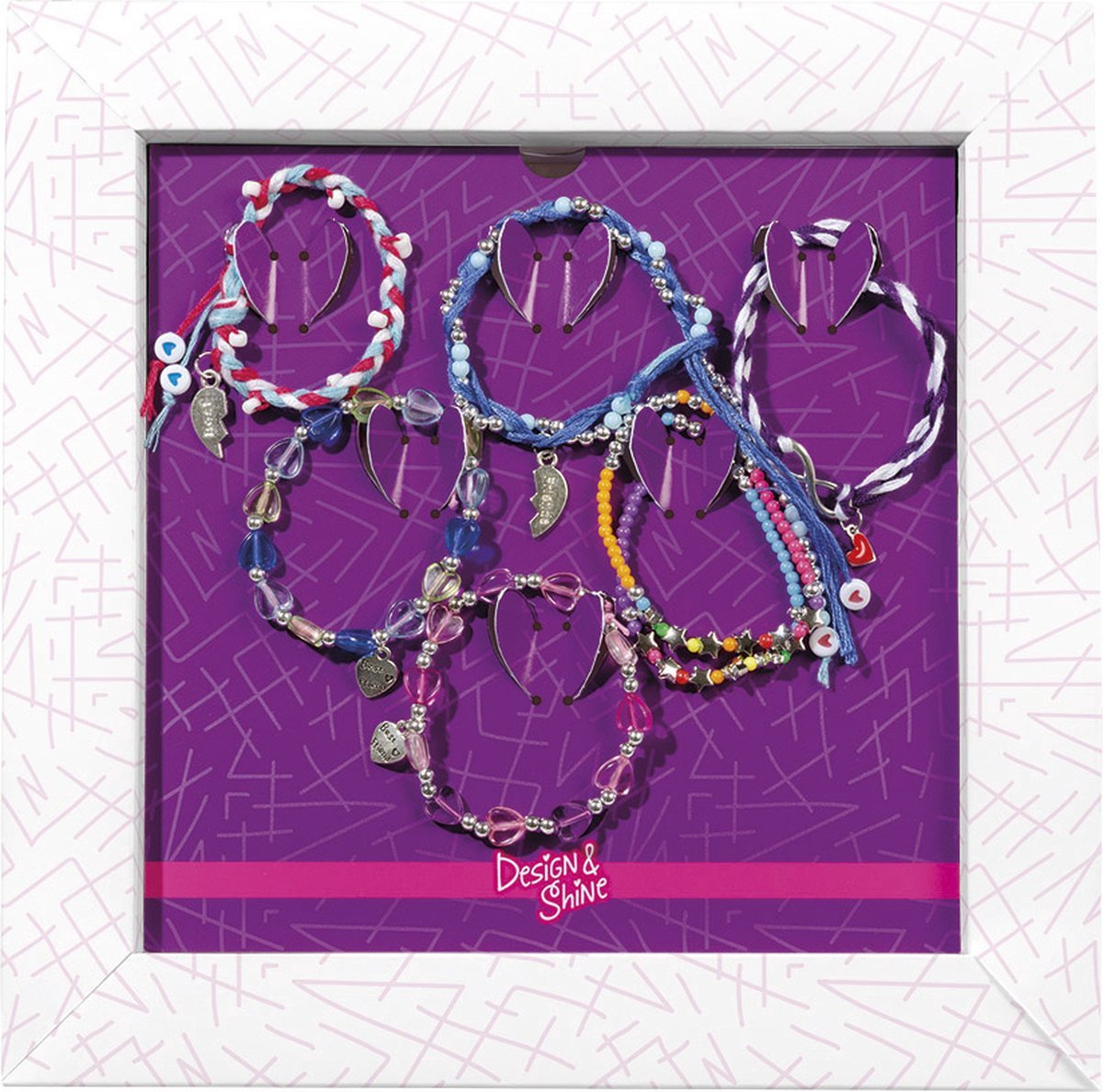 Continutul setului: materiale pentru 8 bratari: ata de diferite culori, margele, pandantive si forme speciale, suport de agatat pentru bratarile confectionate.