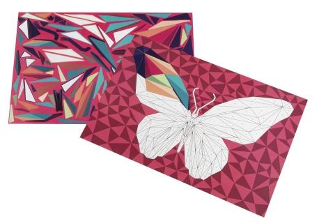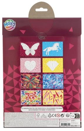 Continut: 4 tablouri cu design diferit - fluture, unicorn, diamant, inima si 4 planse cu stickere.