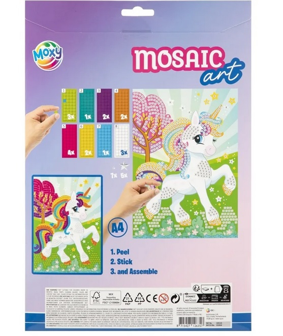 Acest set este perfect pentru micii artisti care doresc sa creeze desene sclipitoare si pline de imaginatie si ofera o activitate usor de realizat si extrem de captivanta, care le va capta atentia celor mici, ajutandu-i sa-si dezvolte abilitati esentiale, precum motricitatea fina, coordonarea maini-ochi, concentrarea si rabdarea. Cum functioneaza? Tot ce trebuie sa faci este sa dezlipesti si sa lipesti piesele de spuma cu sclipici pe suportul A4, creand imagini uimitoare si stralucitoare. Rezultatul final poate fi agatat pe perete in dormitor sau poate fi plasat pe o masa de birou, aducand un strop de culoare si veselie in orice camera. Acest set creativ este o modalitate excelenta de a petrece timpul intr-un mod creativ si educativ! Varsta recomandata: 3 ani+ Atentie! Contraindicat copiilor mai mici de 3 ani. Jucaria/produsul poate contine piese mici care se pot inghiti sau inhala existand pericolul de sufocare sau nu este potrivita copiilor mai mici de 3 ani. Este recomandat să supravegheați copilul în timpul jocului sau utilizării acestui produs. Pastrati instructiunile si etichetele pentru referinte viitoare.