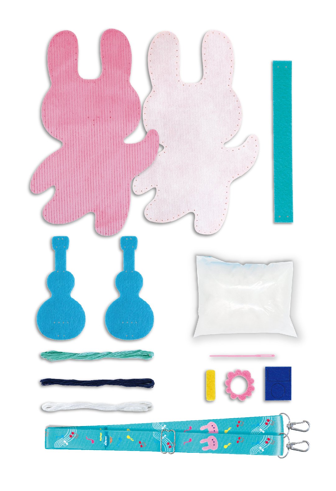 Contine: bucati de fetru; legaturi, bumbac, 1 ac de plastic, 1 curea reglabila
