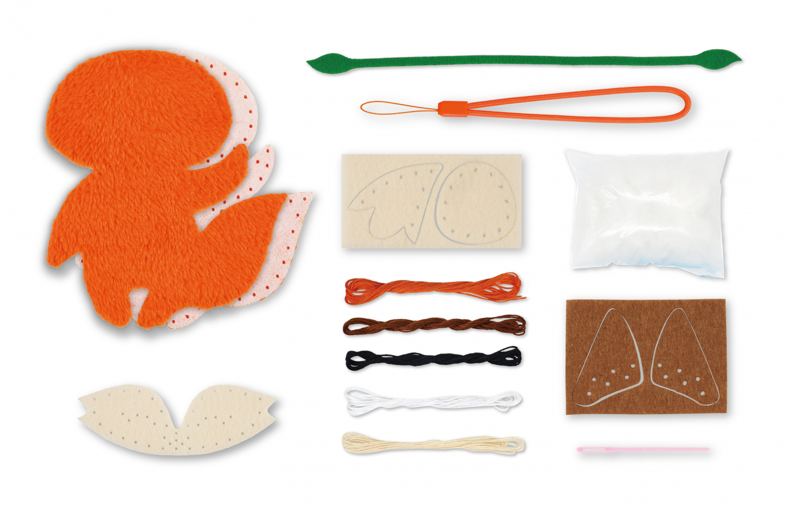 Setul contine: Piese de pâslă pre-tăiate, ață; umplutură, ac de plastic, instrucțiuni.