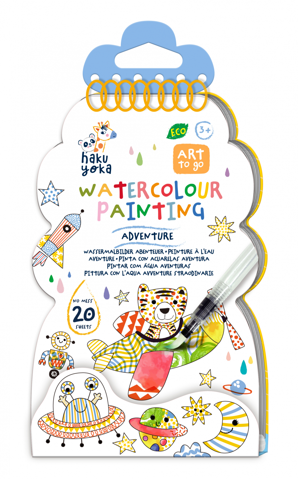 Alege Setul de pictura cu apa - Aventura de la Haku Yoka și oferă-i copilului tău ocazia de a explora lumea fascinantă a culorilor și a aventurii într-un mod inovator și sigur!