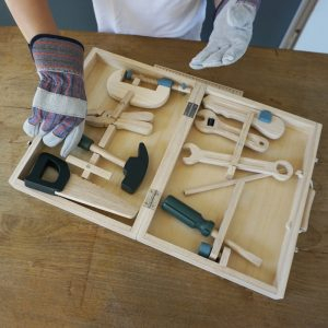 O cutie de lemn cu scule potrivite pentru cei mai pricepuți meșteri.