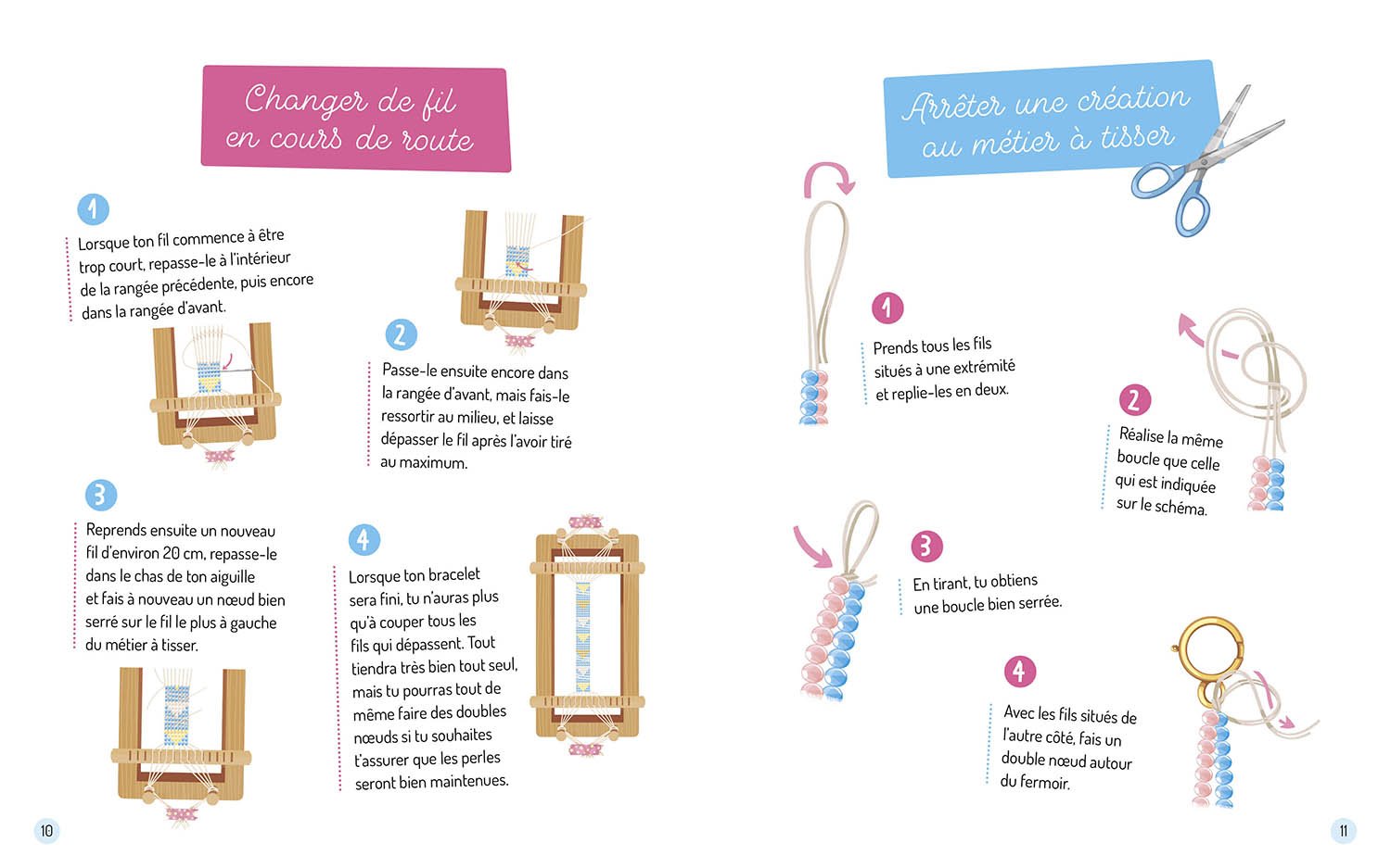 Setul include 1 razboi de tesut din lemn, 15 tuburi cu margele, 1 bobina de ata, 10 cleme de prindere.