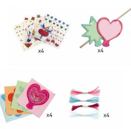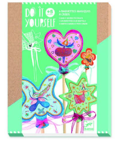 Setul conține 4 bețe și suporturi bază pentru bachete, 4 funde, 4 stickere, 4 coli cu accesorii și mici decorații care se pot aplica la final pentru un efect ..magic.