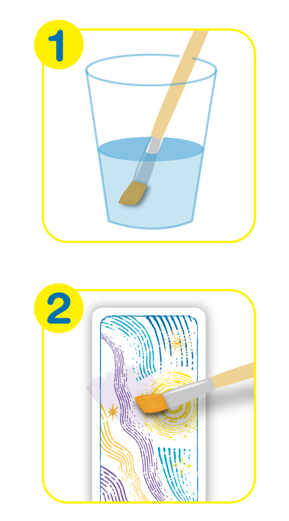 Instructiuni de utilizare: Umezește o pensulă cu apă și aplică pe semnele de carte conform instrucțiunilor incluse. Culoarea va apărea și se va dezvălui treptat, creând efecte vizuale spectaculoase pe măsură ce apa se usucă.