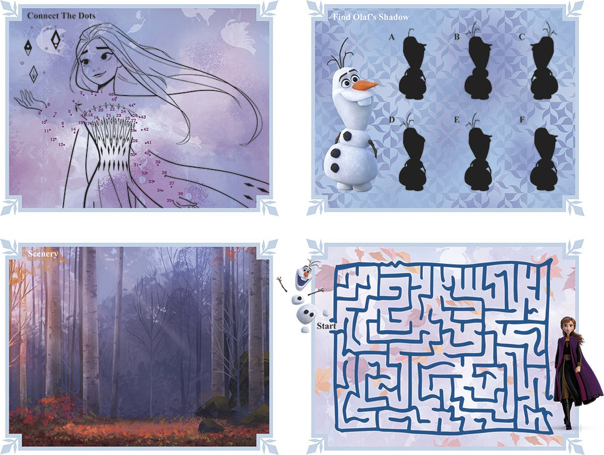 Un super set cu abtibilduri, de diferite forme, dimensiuni si texturi - moi, in relief si mini joculete. Foloseste abtibildurile pentru a-ti decora toate desenele, caietele, scrisorile si invitatiile sau creeaza-ti propria lume magica Disney Frozen, alaturi de indragitele personaje Ana si Elsa.