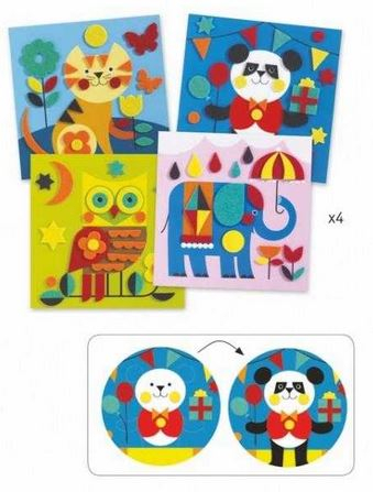 Jocul conține: 4 planșe, elemente autoadezive din fetru, o cărticică cu instrucțiuni pas cu pas, în imagini.