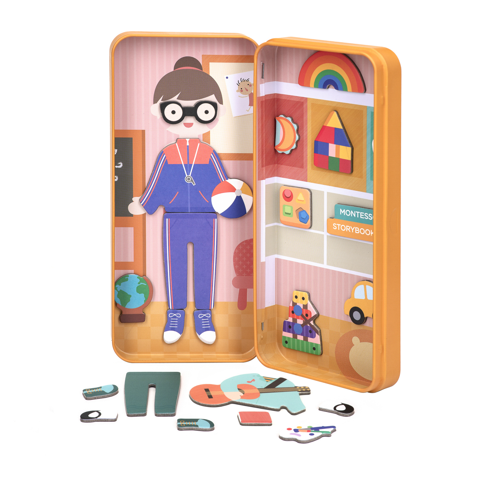 Cutiile noastre de puzzle tematice includ două scene și mai mult de 30 de piese de puzzle magnetice, în care își pot îmbrăca personajul și să își inventeze propriile povești. Acest joc le stimulează imaginația și dezvoltă abilitățile motorii fine.