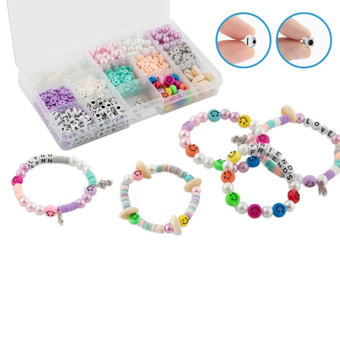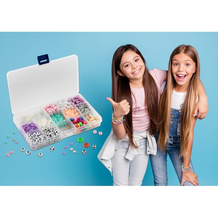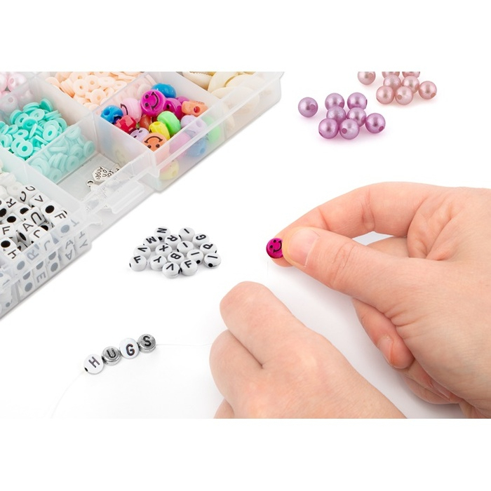 Acest set complet de margele, ambalat intr-o cutie practica, este ideal pentru micutele pasionate de confectionarea de bijuterii. In cutie veti gasi margele colorate intr-o varietate de nuante vibrante, perle, smillies, margele cu litere pentru a crea bratari si pandantive personalizate, dar si elemente decorative speciale, cum ar fi cochilii marine si mici pandantive. Setul include, de asemenea, fir de nailon pentru a lucra margelele cu usurinta. Este perfect pentru proiecte creative si personalizate, oferind oportunitati nesfarsite pentru a crea bijuterii unice!