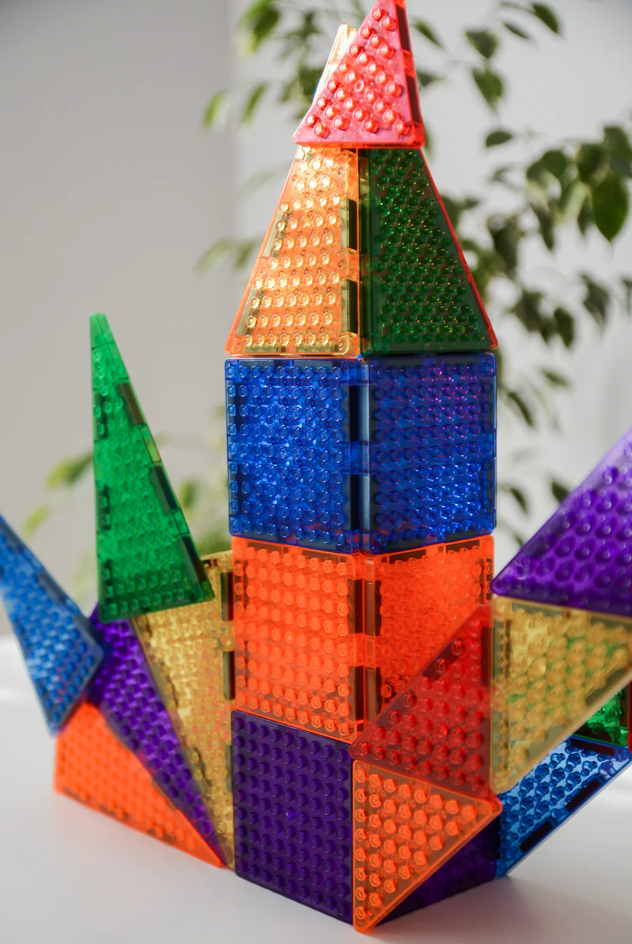 Acest set conține cinci forme, cu un total combinat de 66 de piese! Formele magnetice au un sistem de interblocare care funcționează pe ambele fețe, ceea ce înseamnă că copiii se pot juca în diverse moduri cu aceste piese unice și pot crea idei nelimitate. Acesta promovează creativitatea și îi ajută pe copii să își dezvolte abilitățile cognitive.