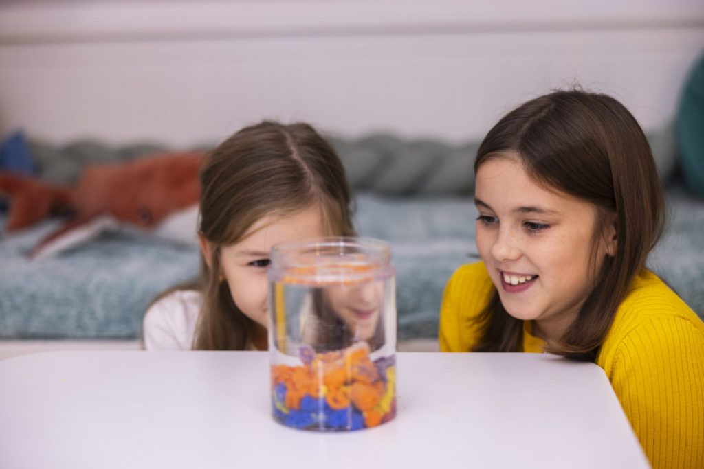 Acest joc îi poate introduce pe copii în cunoașterea proprietăților fizice ale substanțelor.